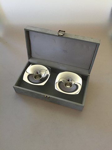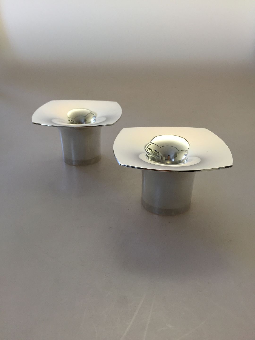 1 Pair of Hans Hansen Sterling Silver Candlesticks in modern design by Leon Kastbjerg Nielsen . Measures 6,3cm high and is in good condition. Comes in the original box.