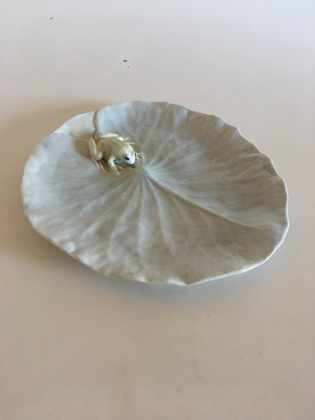 Royal Copenhagen Art Nouveau Fad med Frø. Meget tidlig udgave. Måler 26cm x 23cm og er i perfekt stand. Vi har også en senere udgave, hvor farven er lidt anderledes.