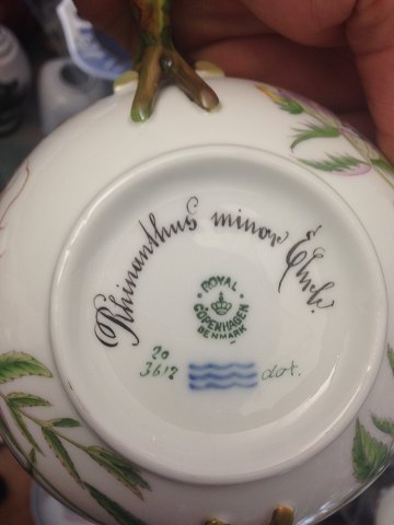 Royal Copenhagen Flora Danica Bouillon Kop med underkop No 3612. Perfekt stand. Latinsk navn: Rhinanthus Minor Ehb.
