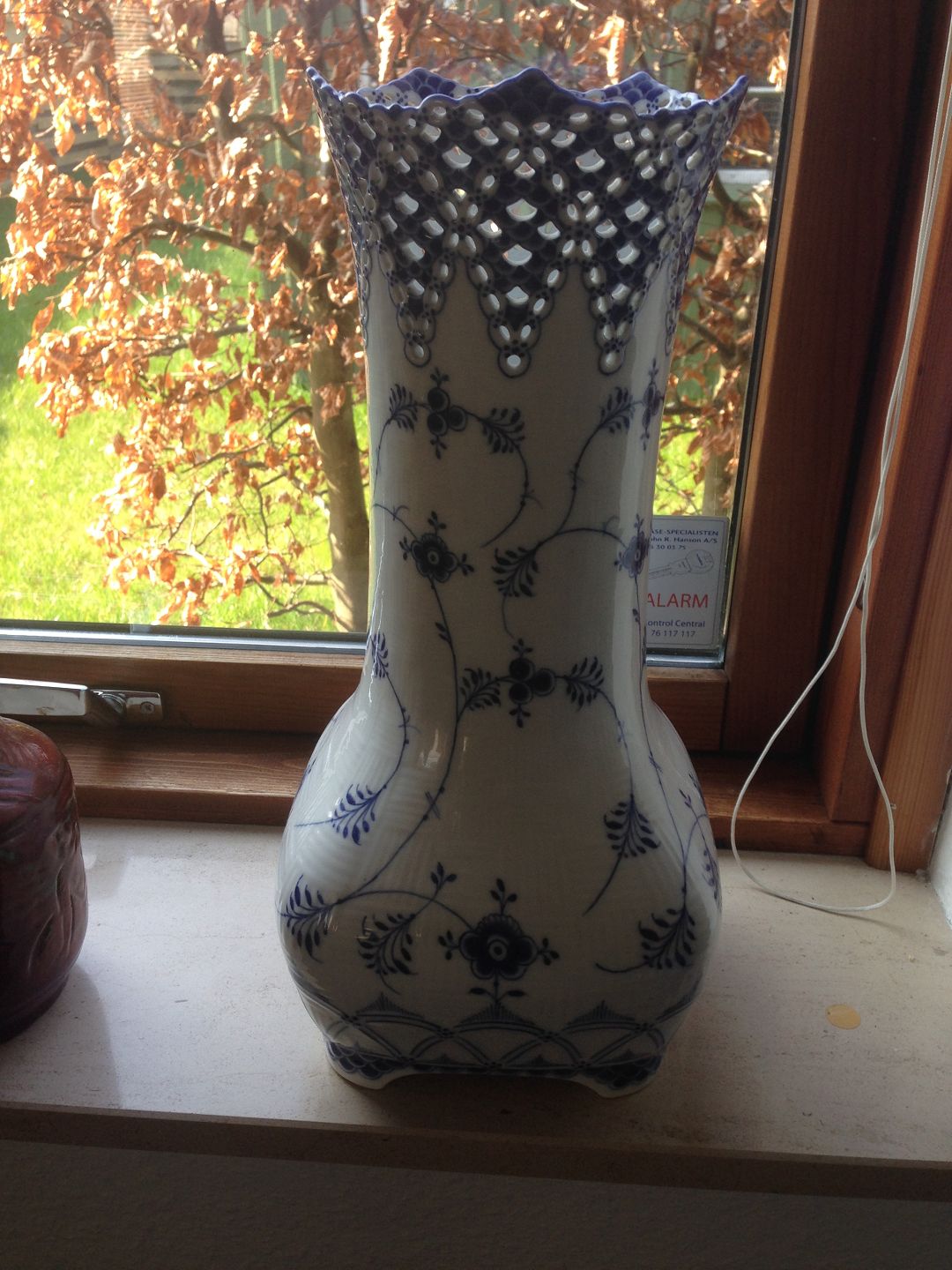 Royal Copenhagen Blue Fluted Full Lace Large Vase No 1166. Measures 37,5cm and is in good condition, except for a hairline, see picture. Is from pre 1923.