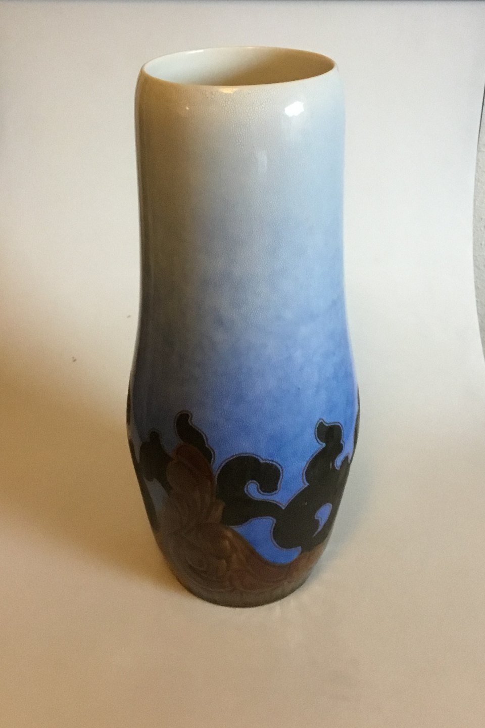 Royal Copenhagen Art Nouveau Unique Vase by Hans Flygering from 1915 with bindesboll ornamentation. Measures 51 cm / 20 5/64 in. high and in perfect condition. With iron glaze and snakeskin glaze.