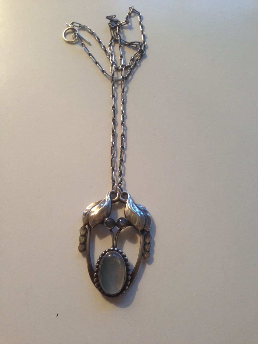 Georg Jensen 826 Silver Pendant with moon stones No 4 from 1904-1908. In perfect condition.