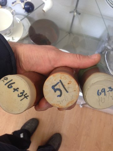 Royal Copenhagen Glaze Trial vases. Measures 7cm, 8cm and 8,5cm. Is in perfect condition.