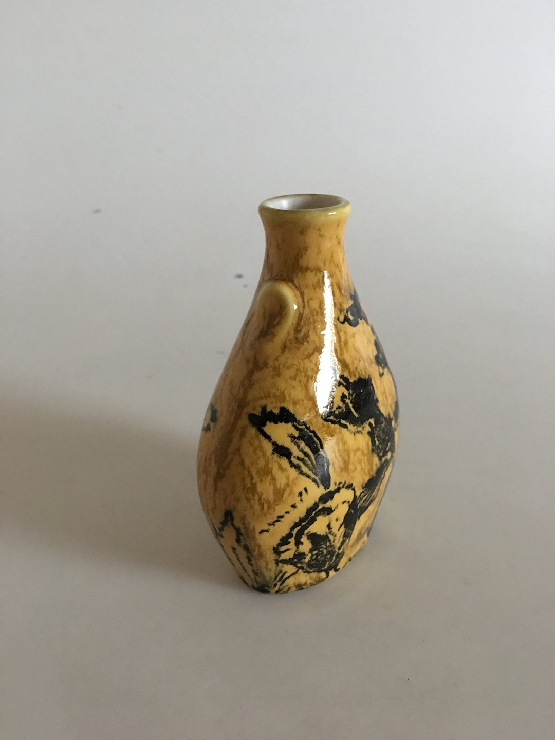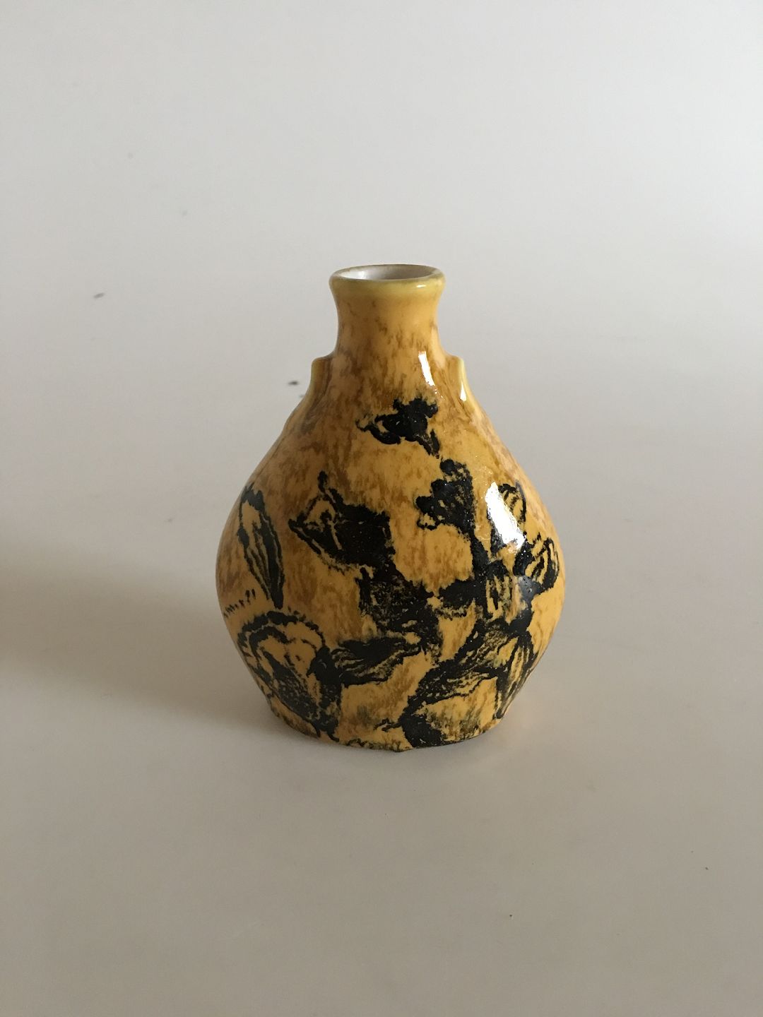 Bing and Grondahl Unique Vase by Cathinka Olsen. Yellow and black glaze. Measures 11cm has hairline crack at rim.