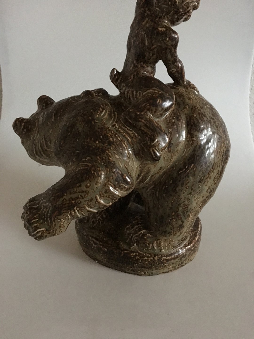 Royal Copenhagen Knud Kyhn Stoneware Figurine of Faun and Bear No. 21233. Measures 43cm and is in perfect condition.