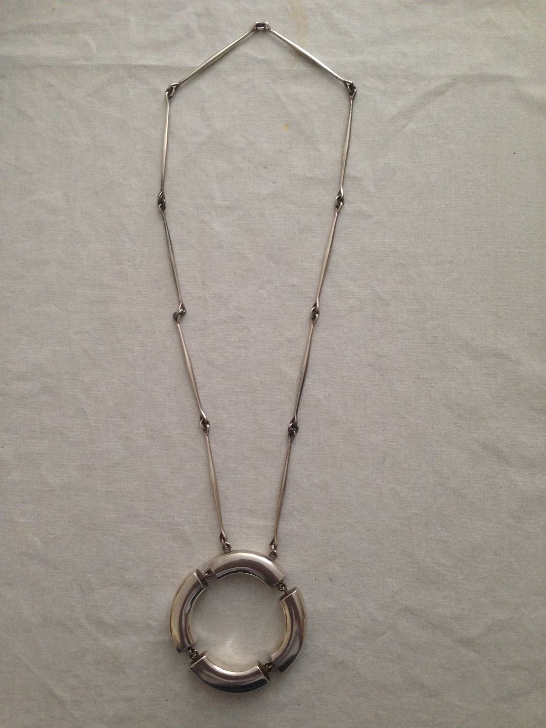 Georg Jensen Sterling Sølv Vedhæng af Astrid Fog No 137. Vedhæng måler 7,2cm dia og kæde 66cm lang.