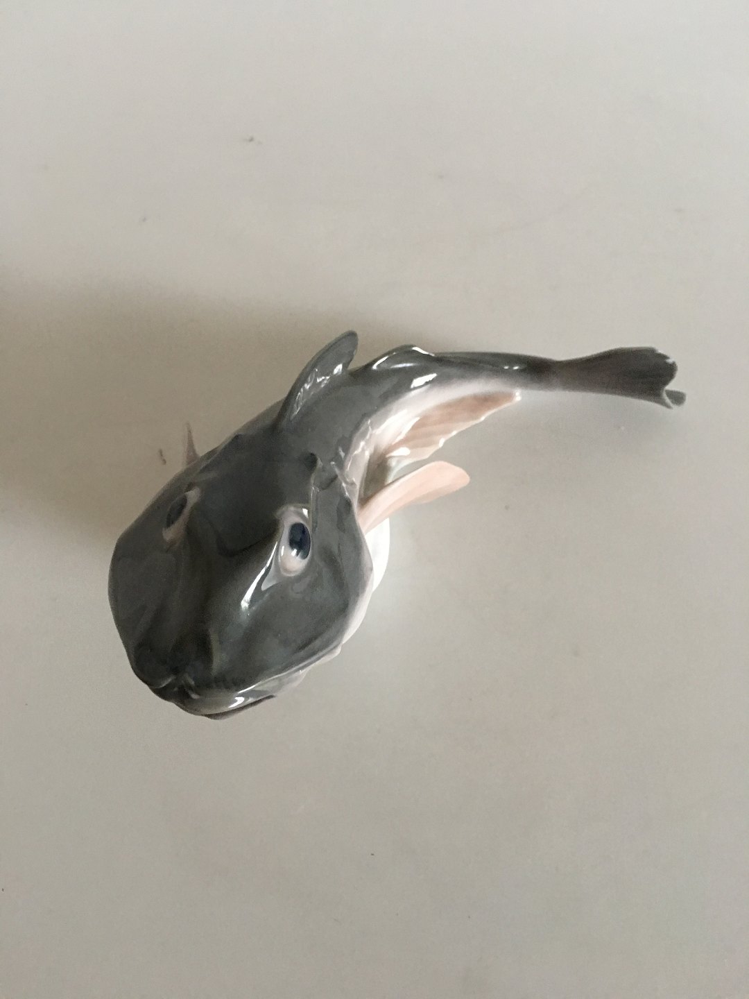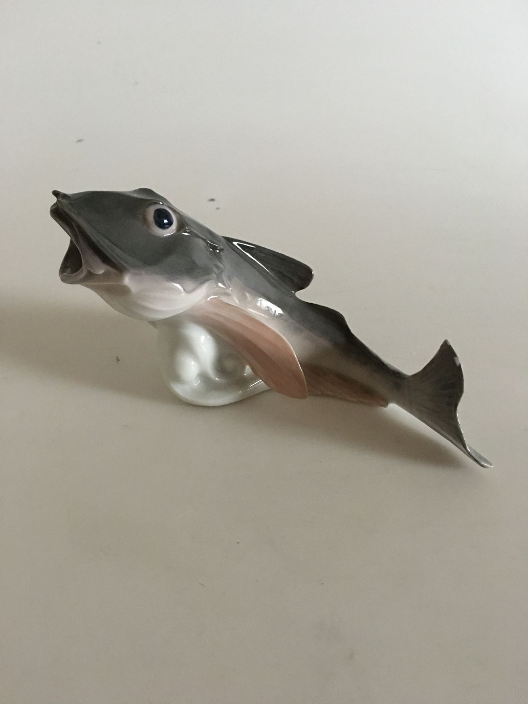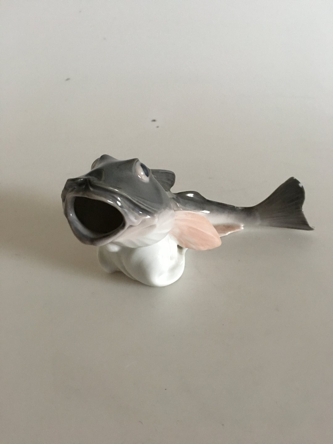 Royal Copenhagen Art Nouveau Figur i form af Torsk med åben mund No 286. Måler 17cm og er i god stand. Udover et par mini afslag på hale.