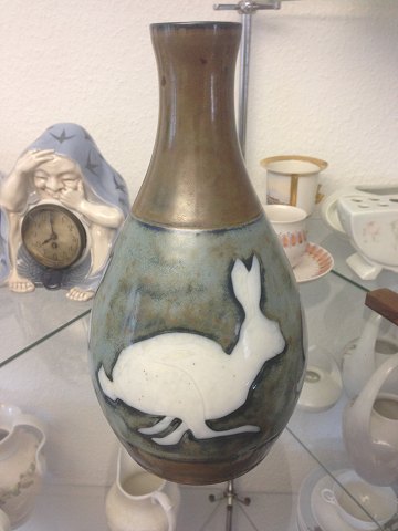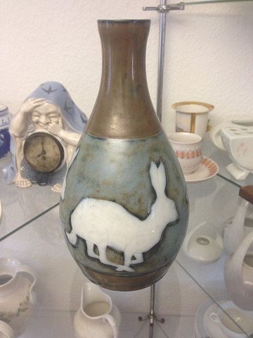 Bing & Grondahl Art Nouveau Unique Vase by Achton Friis with Rabbits. Measures 24,5cm and is in good condition.