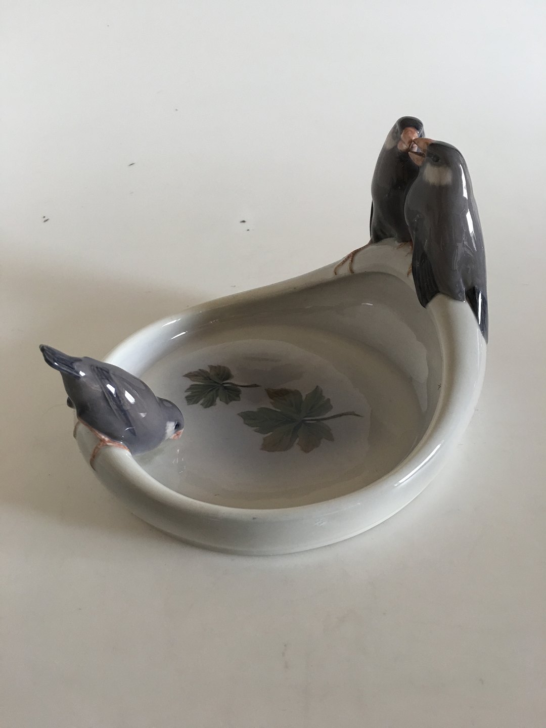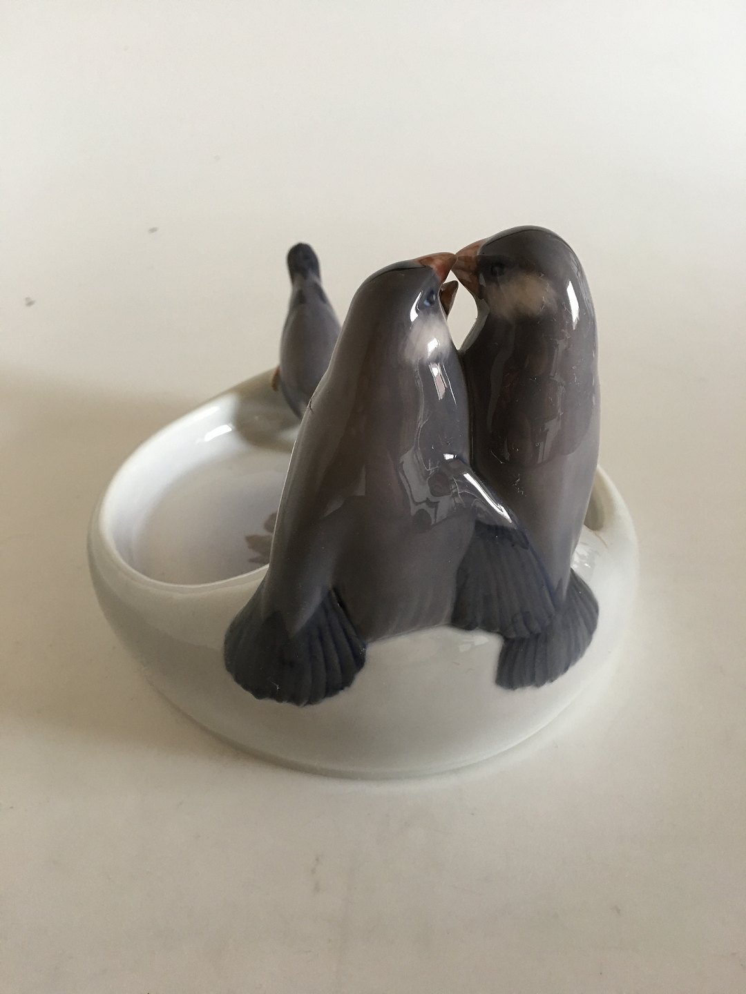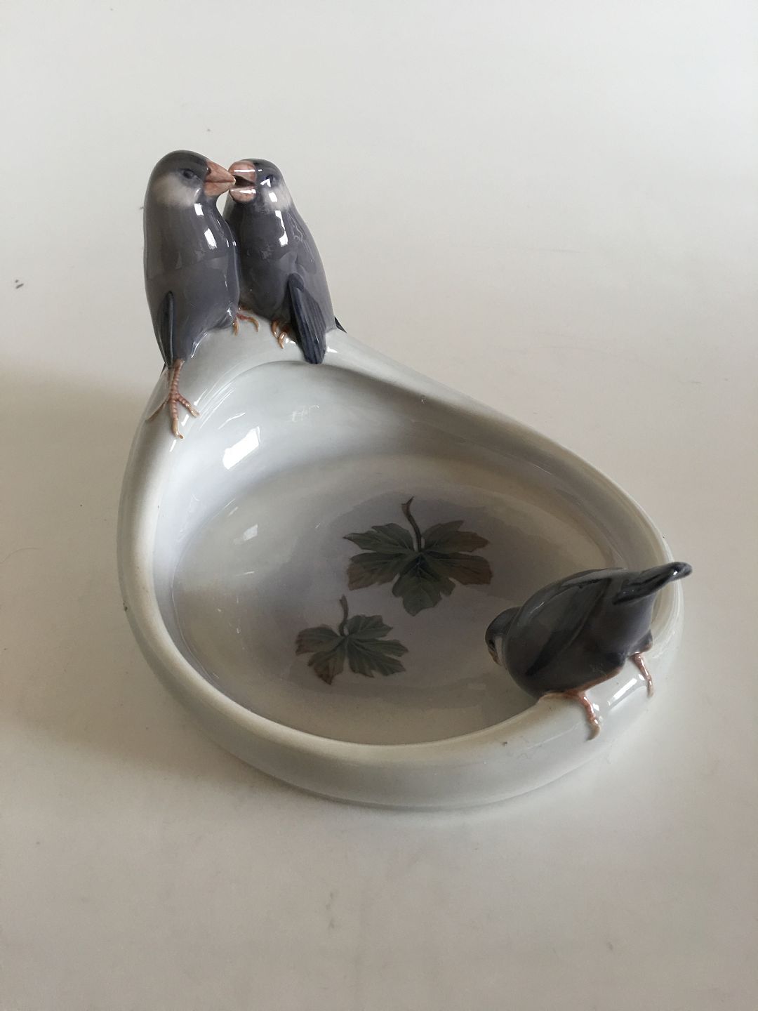 373 -742 Kgl. finker på skål Th. Madsen 1902. Måler 15 cm x 20 x 18 cm(5 29/32 in. x 7 7/8 in. x 7 3/32 in.). Lidt ridser