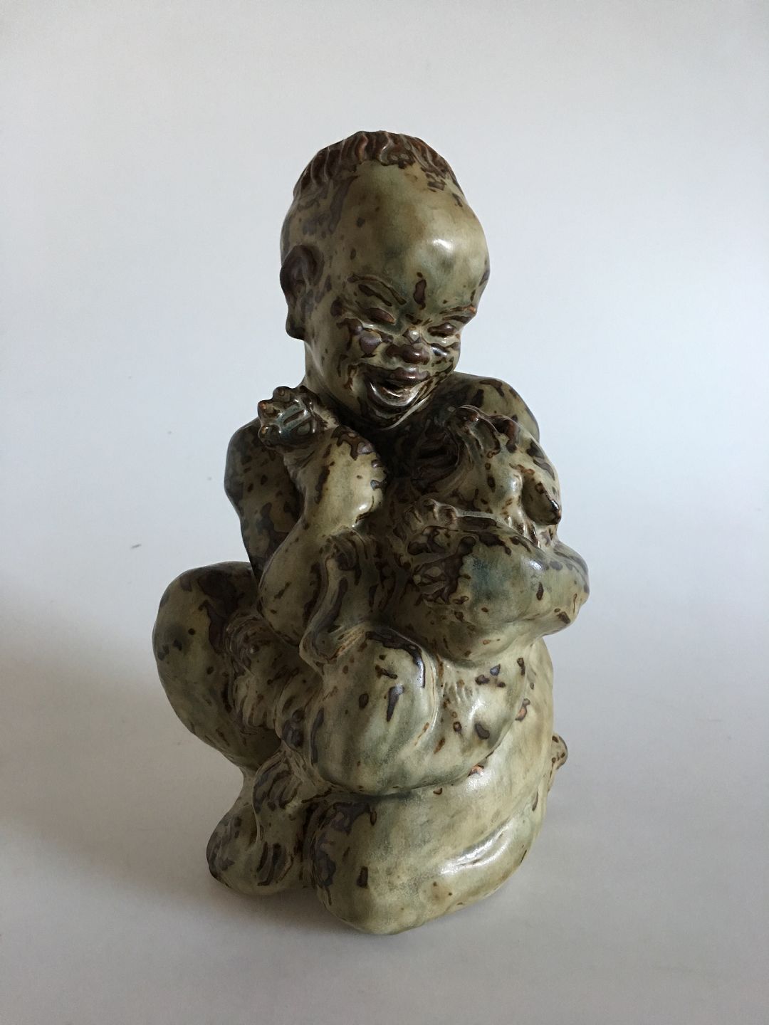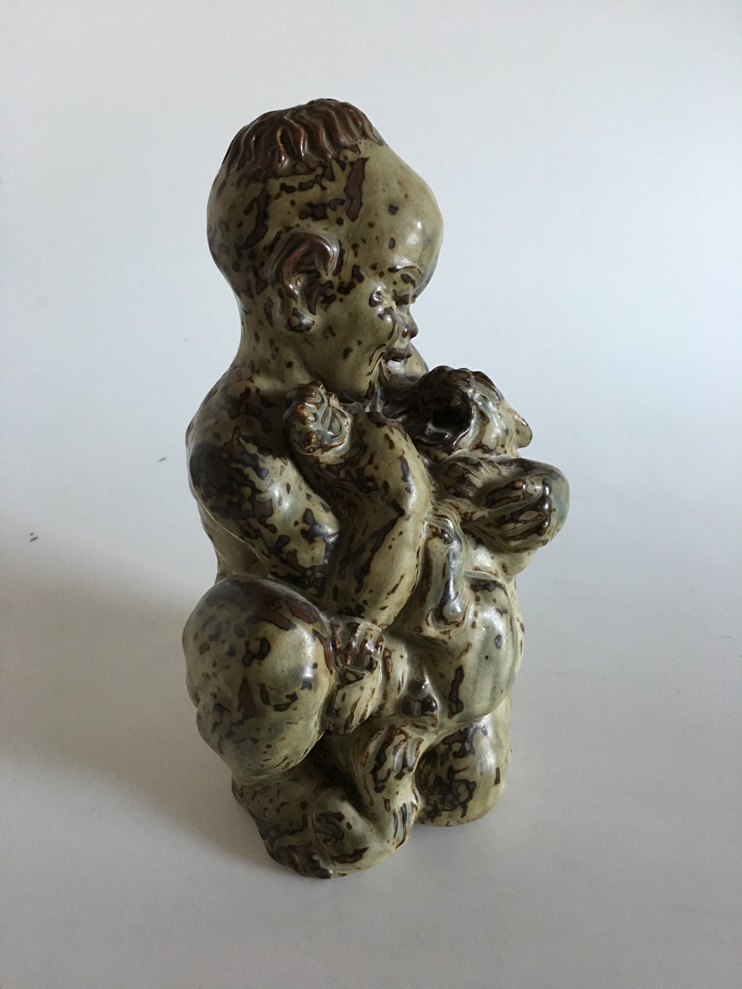 Royal Copenhagen Stoneware figurine of African boy with cat no. 20244. Measures 27cm and designed by Knud Kyhn.