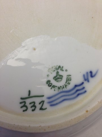 Royal Copenhagen Musselmalet Riflet Ovalt Fad No 332. 24 cm x 20 cm.
