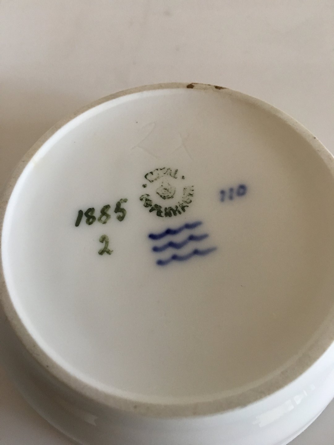 Royal Copenhagen Art Nouveau lågskål med sommerfugl No 1885/2. Måler 10 cm dia.