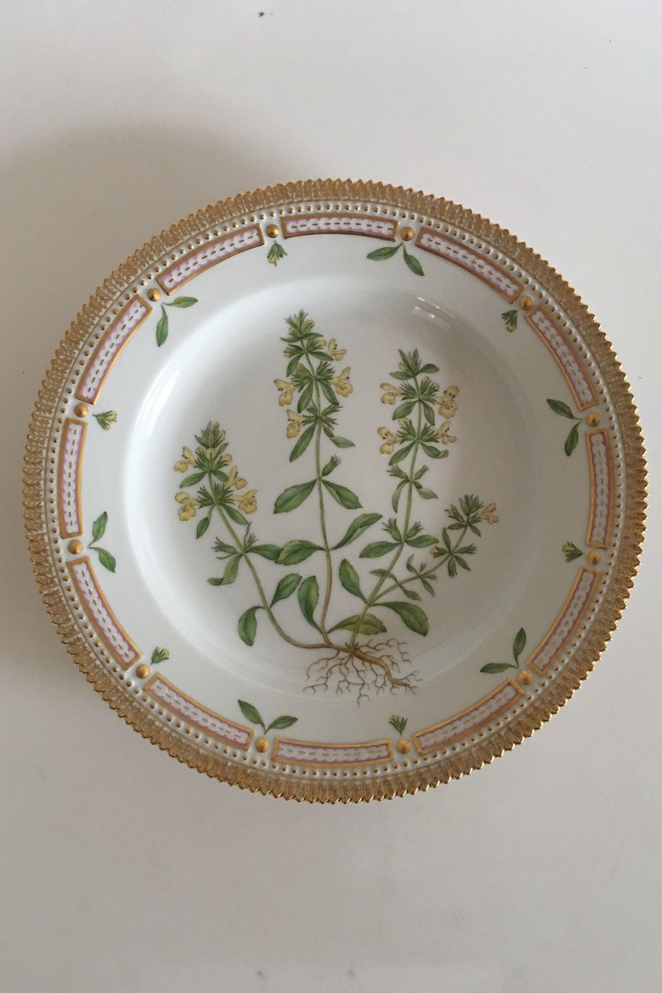 Royal Copenhagen Flora Danica Spisetallerken No 3549. Måler 25cm og er i perfekt stand. Latin name: "Stachys annuus L."