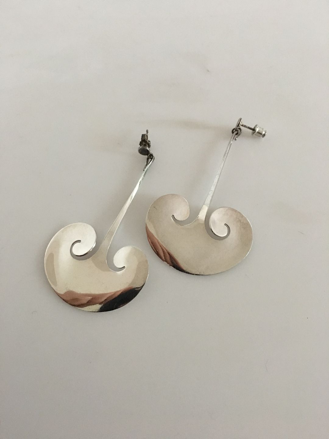 Georg Jensen Sterling Silver Earrings designed by Torun No 372A. Measures 7.2 cm / 2 53/64 in. Weighs 15 g / 0.53 oz.