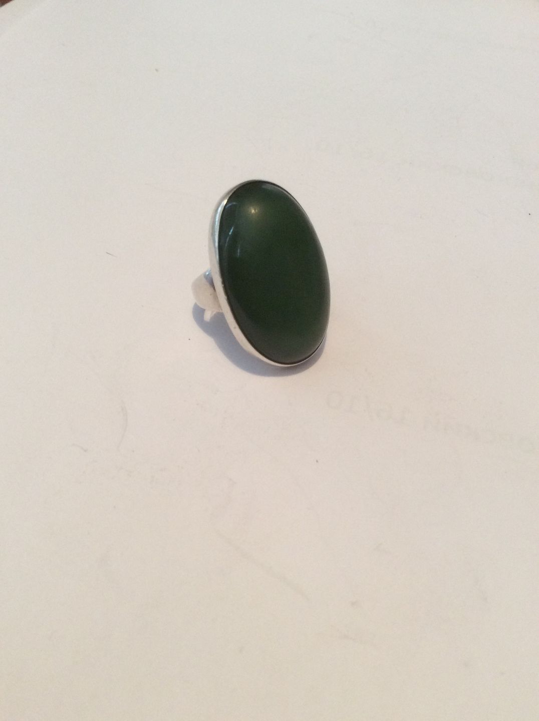Georg Jensen Sterling Silver Ring with Green Stone No 90B. Ring Size 56.