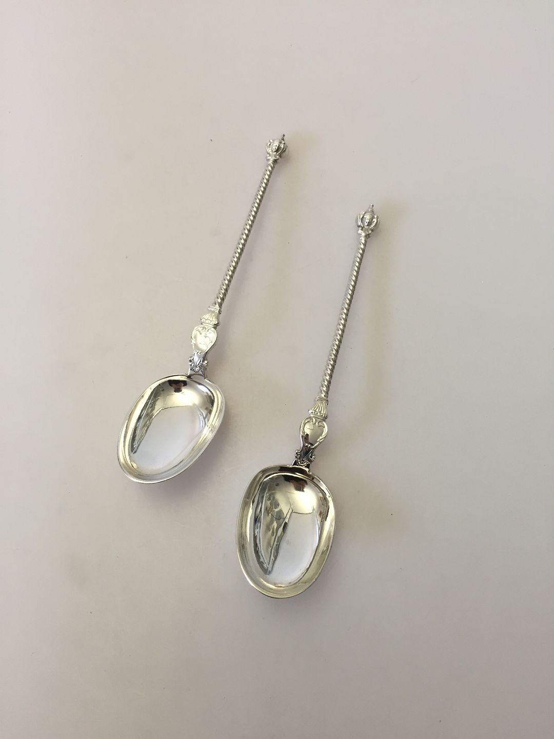 Par Apostle Danske Sølv Skeer. Måler 20,7cm. Er fra 1897
