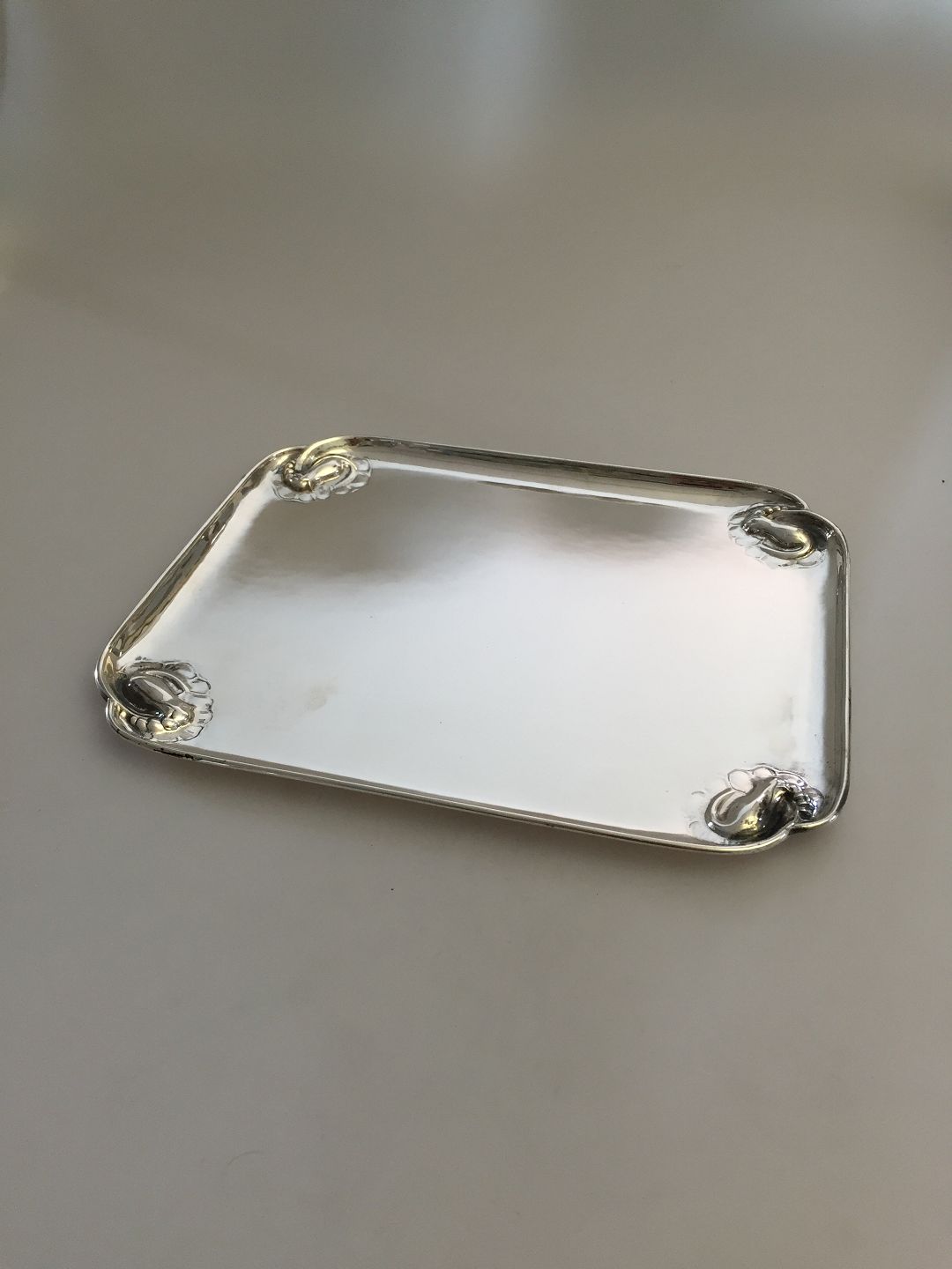 Georg Jensen Magnolia Sterling Sølv Bakke fra 1925-1932 No 2A. Måler 28cm x 23cm. Vejer 565 gram