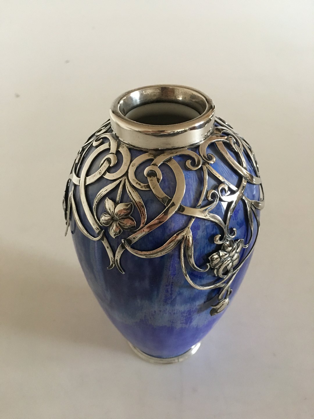 Royal Copenhagen Unique Crystaline Glaze vase by Valdemar Engelhardt with Michelsen Mounting No G47. Measures 18cm high.