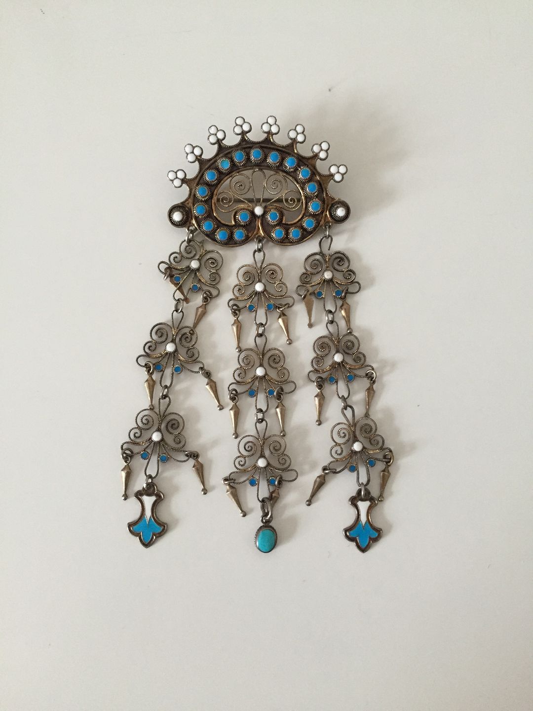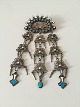 Marius Hammer Art Nouveau sterling sølv broche med emalje, Norge. Måler 4,5cm x 9cm. Vejer 21g.