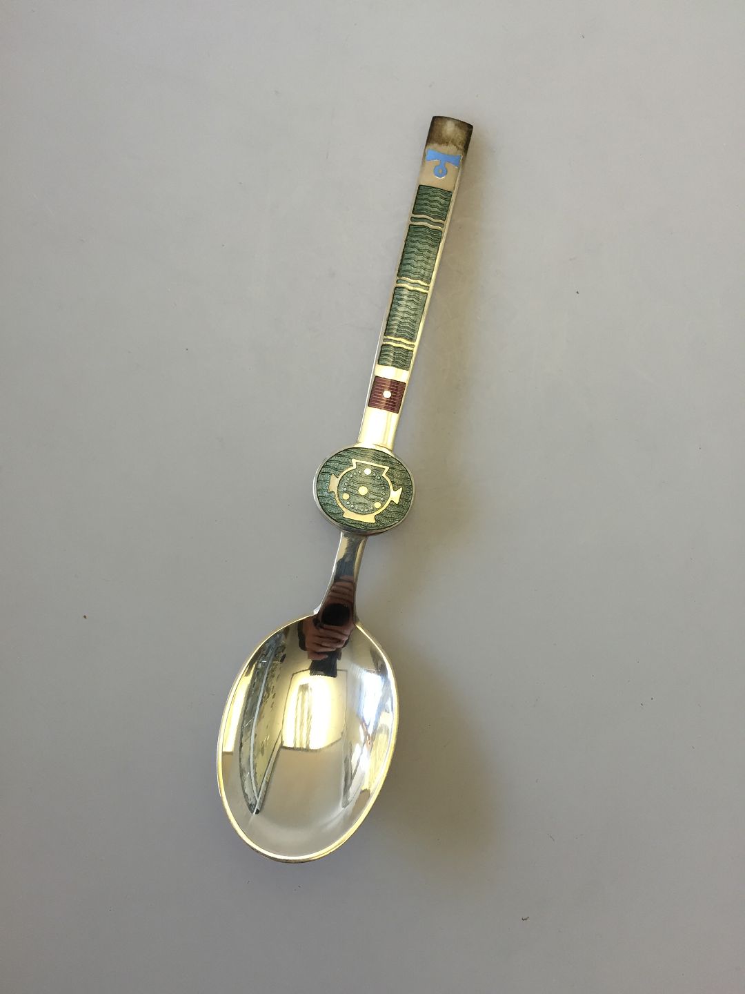 A. Michelsen Sterling Silver with Enamel Spoon of the Month no. 2 designed ny Paul René Gauguin. Measures 15,5 cm (6")