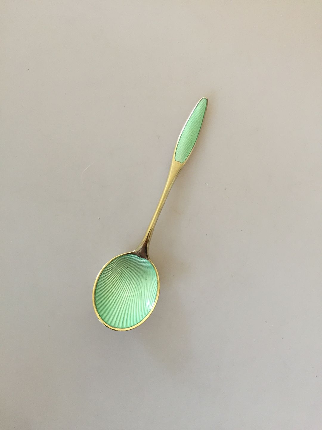 Frigast Sterling Sølv Forgyldt Grønne Emalje skeer. Måler 13 cm. Vi har 2 på lager.