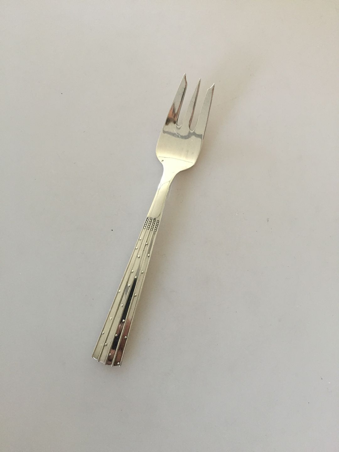 Champagne O. V. Mogensen Sølv Kagegaffel. Måler 14,3 cm.