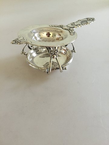 Beautifull Art Nouveau Teastrainer and teastrainholder in silver from DA Teastrainer. Measures 17 cm (6 11/16"). Height of holder is 4,5 cm (1 49/64") Combined weight is 124 g (4.35 oz).