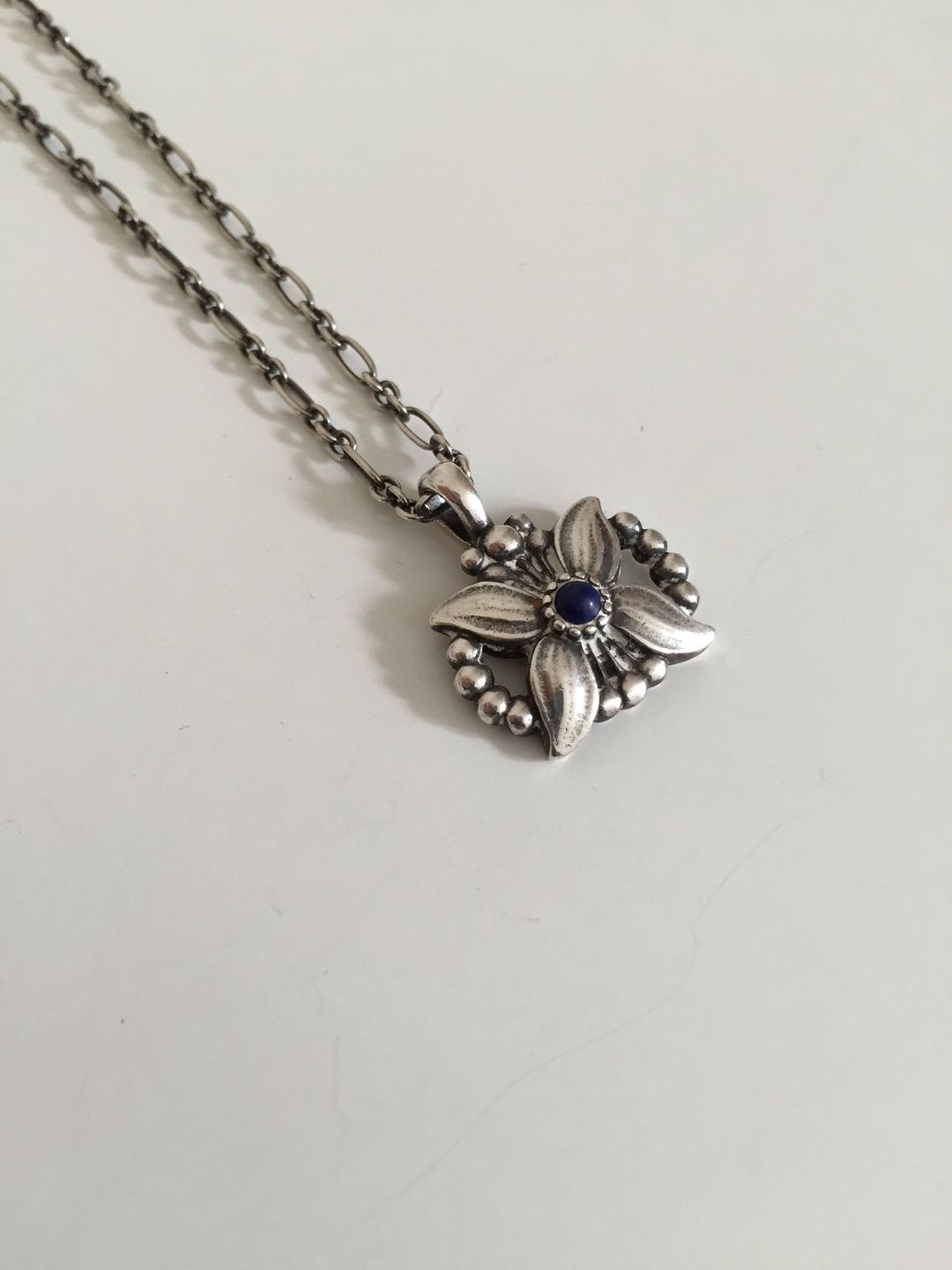 Georg Jensen Årssmykke vedhæng Sterling Sølv med lapis Lazuli 1998. Kæde måler 44 cm. Vejer 13 gram