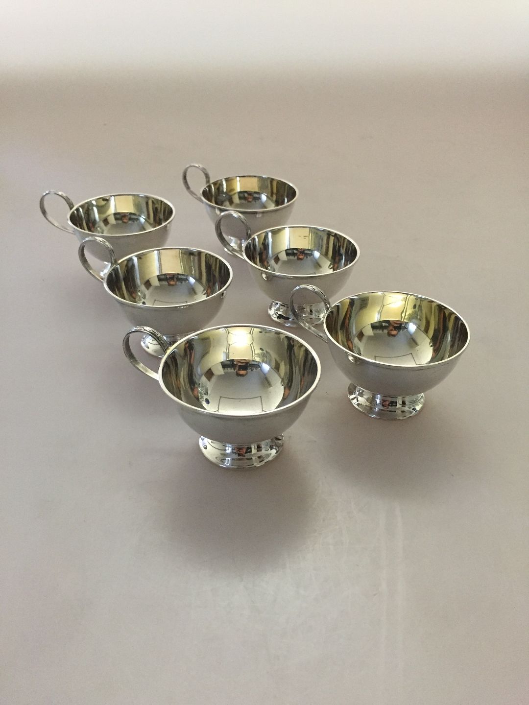 Set of 6 Swedish Silver Punch Glasses from GAB. Date marks for 1973. Measures 4 cm tall (1 37/64") and 6.2 cm diameter (2 7/16"). Weight of one cup is 35 g / 1.25 oz.