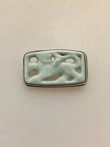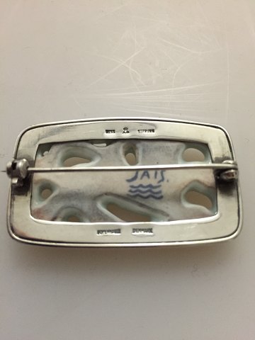 Royal Copenhagen A. Dragsted Jais Nielsen Sterling Silver og Porcelain Brooch.