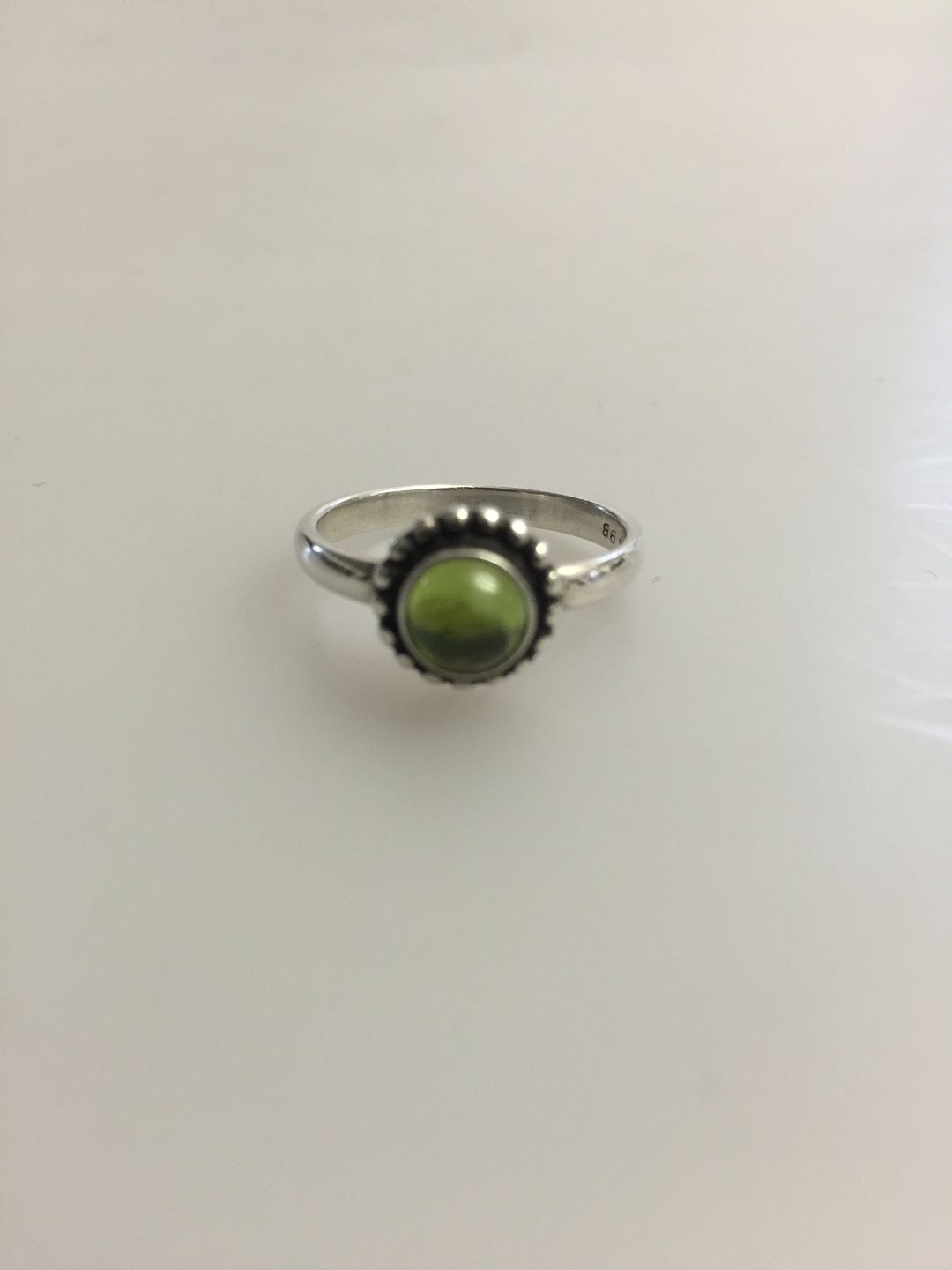 Georg Jensen Sterling Silver Ring No 9B with Clear Green Stone
