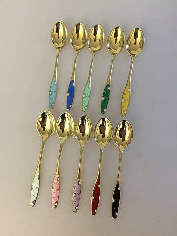 Et Sæt på 10 stk kaffeskeer i Sølv og Emalje fra Frigast