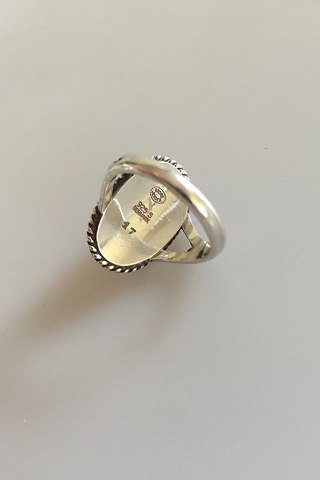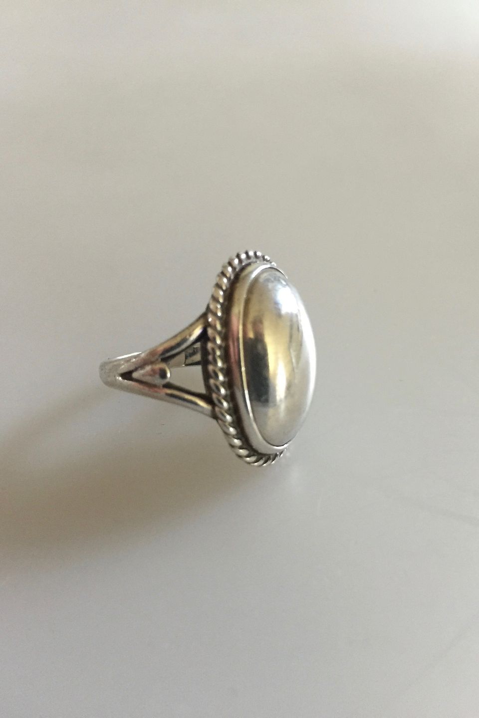 Georg Jensen Sterling Silver Ring No 17 with Silver Stone. From after 1945. Ring Size 54 / US 6 3/4. Silver Stone measures 2.2 cm / 0 55/64 in. x 1.2 cm / 0 15/32 in.