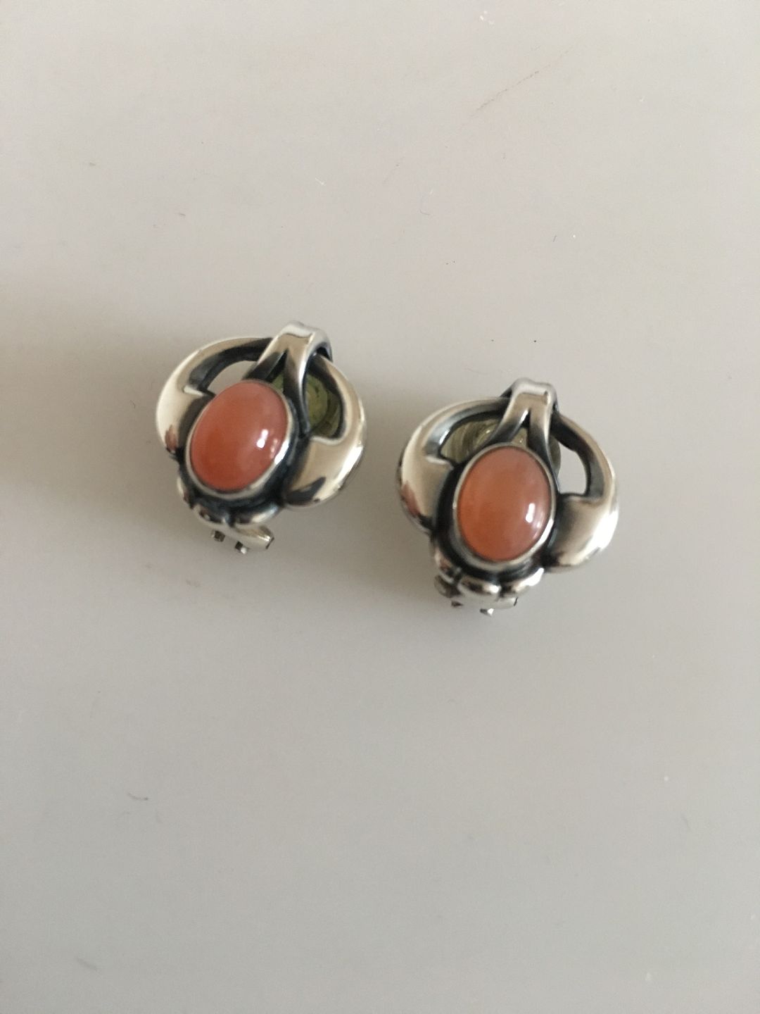Georg Jensen Sterling Silver 2006 Annual Earrings with Orange Moonstone
