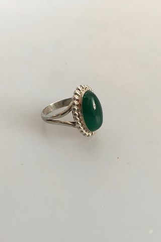 Georg Jensen Silver Ring No 9 with Green Agate. From 1910-1925.