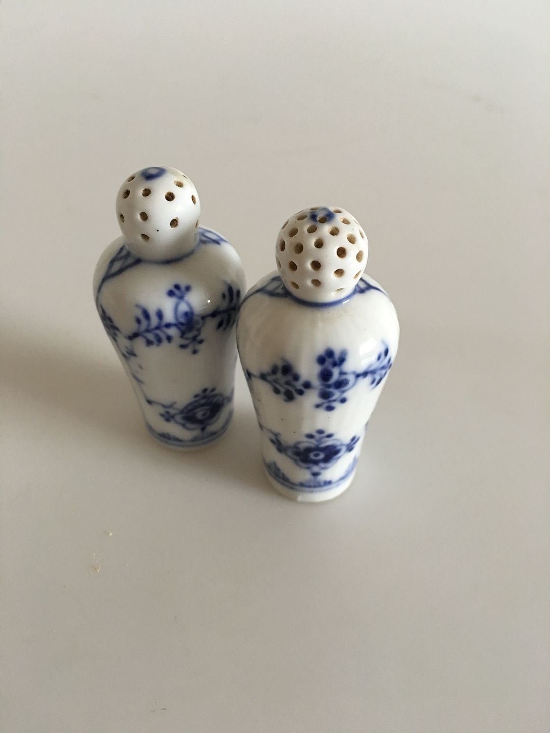 Royal Copenhagen Blue Fluted Plain Salt & Pepper Shaker Set No 439. 6.5 cm (2 9/16"). The shakers both need a new bottom lock piece.