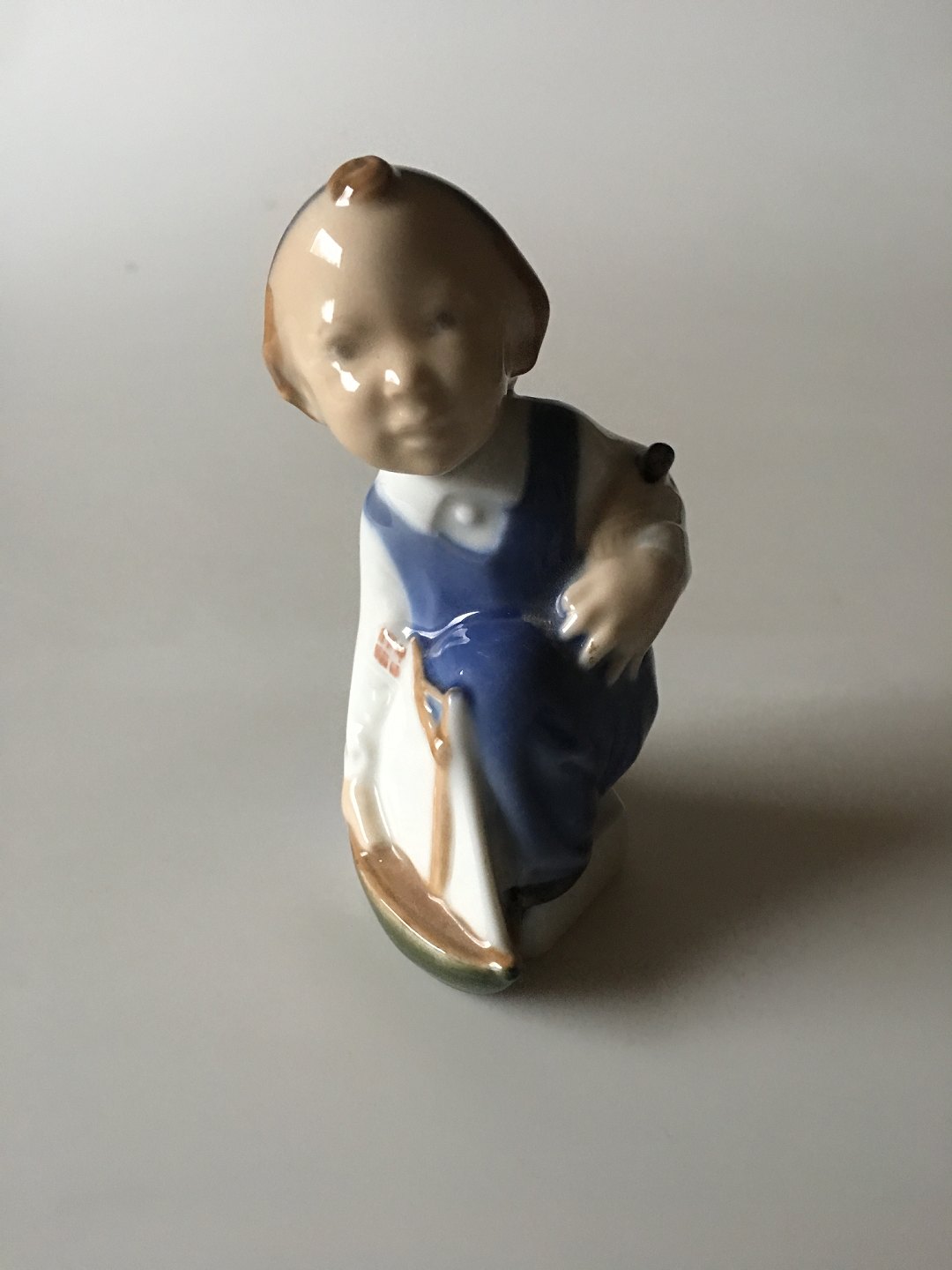 Royal Copenhagen Figur Lille Dreng med Skib "Aage" No 3272.