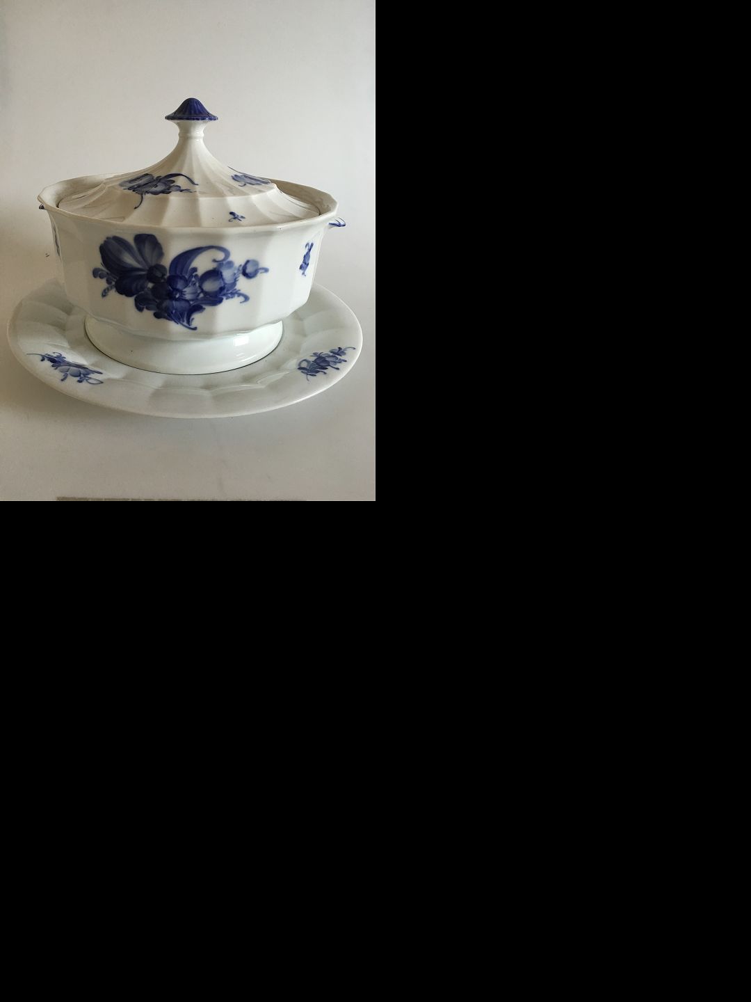 Royal Copenhagen Blå Blomst Kantet Stor Suppe Terrin med Låg og Underfad No 8533. Terrinet måler 14.5 x 29 cm uden låg.
