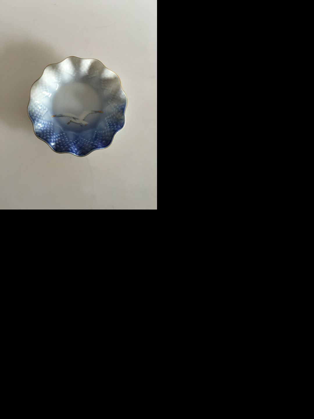 Bing & Grondahl Seagull with Gold Small Fluted Dish No 350. 14 cm dia. (5 33/64")