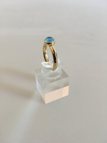 Georg Jensen 18 Carat Gold Ring with Blue Topas. Ring size 51. Weighs 5.3 g / 0.18 oz