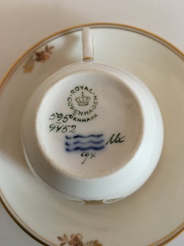 Royal Copenhagen Golden Basket Coffee Cup and Saucer No 9452. Cup measures 6 x 7.5 cm (2 23/64" x 2 61/64")