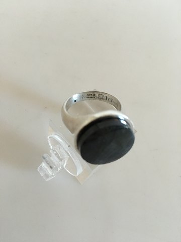 Georg Jensen Sterling Silver Ring with Blue Toned Stone No 177. Designed by Bent Gabrielsen. Size 49. Weighs 10 g.