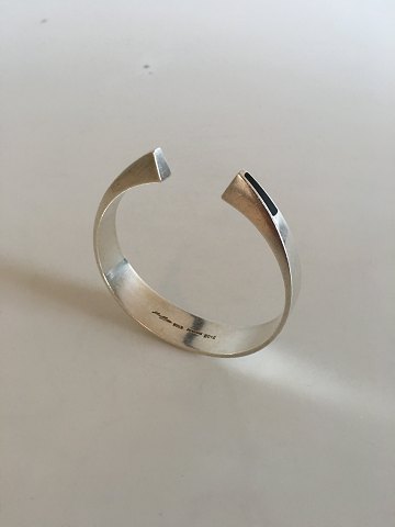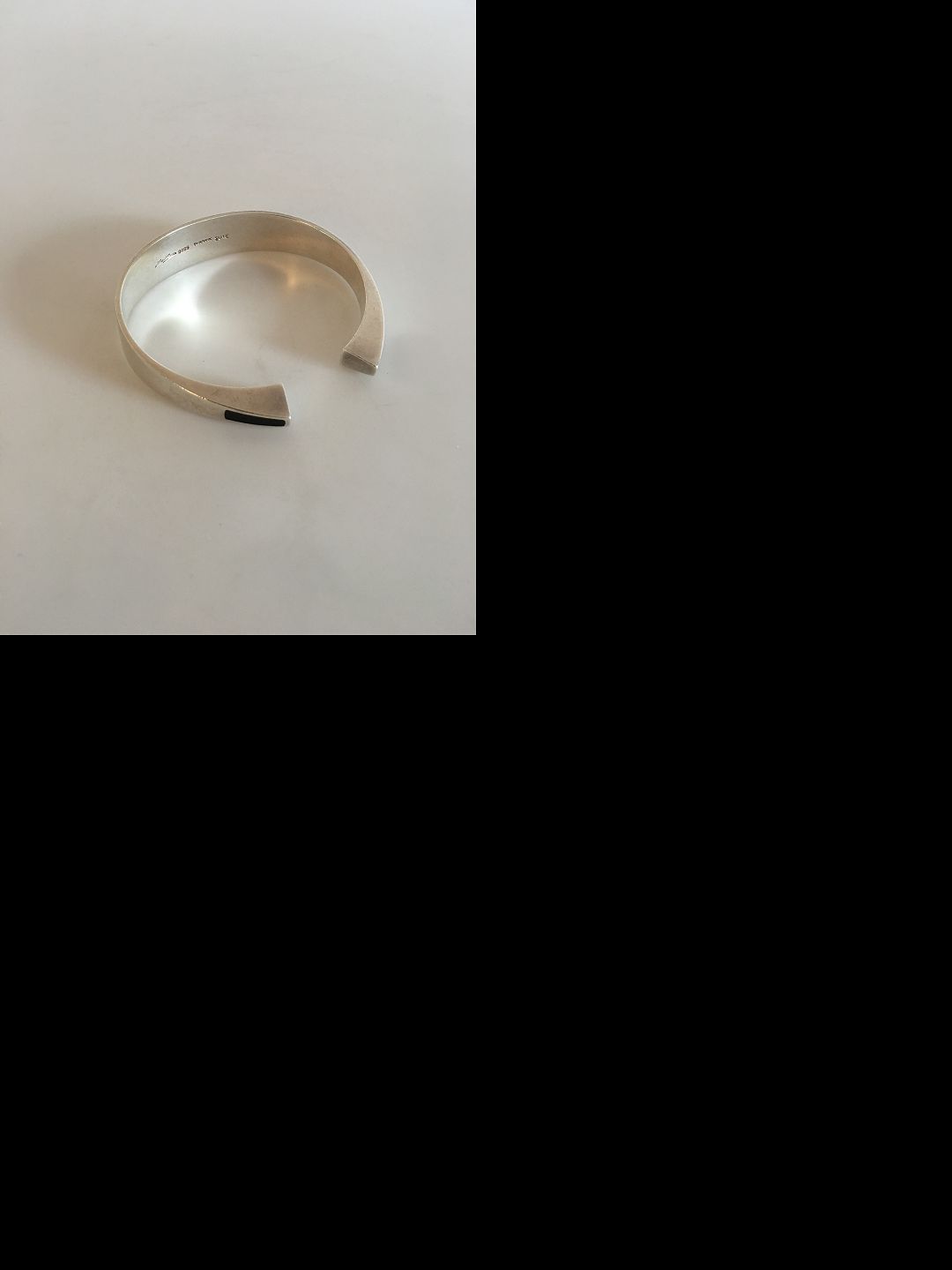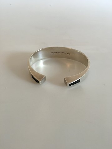 Hans Hansen Sterling Silver Bangle Bracelet No 201E with Black Ornamental Pieces. Inner measurement 20 cm / 7 7/8". Weighs 64 g / 2.25 oz.