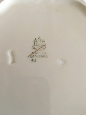 Bing and Grøndahl Aakjær Large Potato/Vegetable Bowl No. 43. Cream colored with gold rim. In fine condition. Measures 25.5 x 8 cm / 10.03 in. x 3.14 in.
