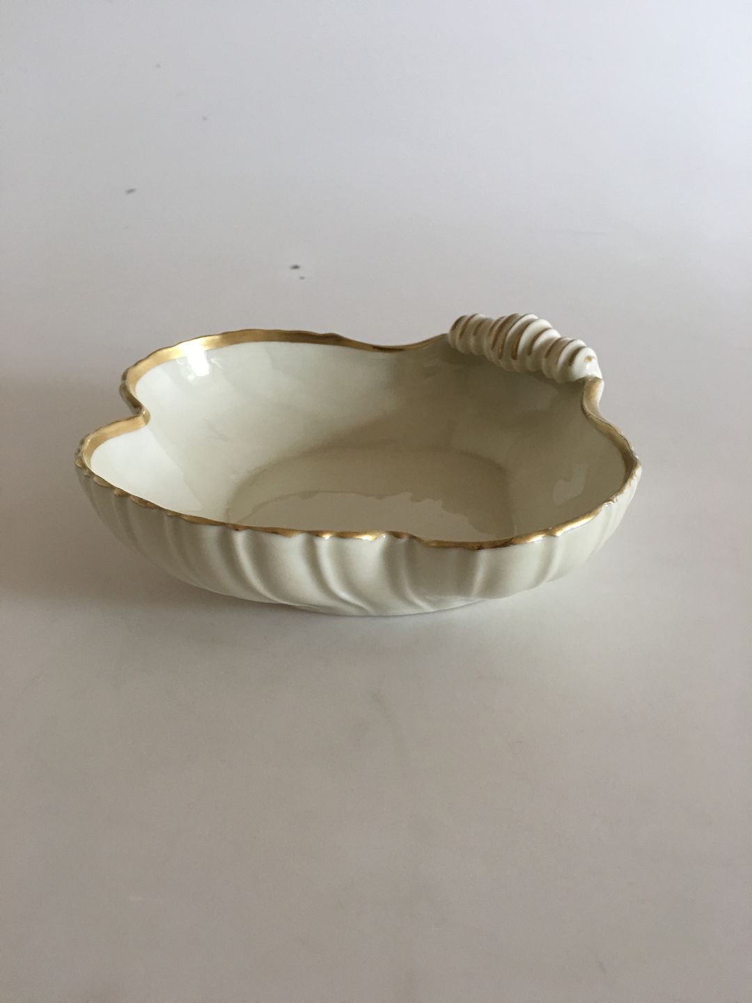 Bing & Grondahl Aakjaer Shell Dish No 42. Creme with Gold Border. In good condition. 6 7/10"
