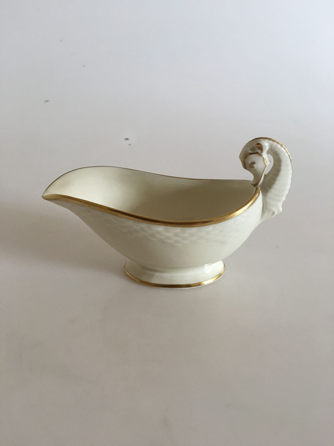 Bing & Grondahl Aakjaer Small Gravy Boat No 12. Creme with Gold Border. 2 1/2 oz. In good condition.