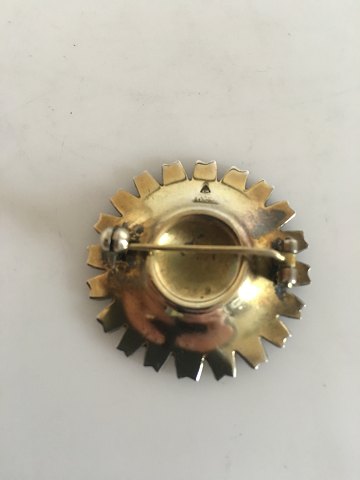 Anton Michelsen Gilded Silver Brooch with Blue Enamel. 3.3 cm dia (1 19/64"). Weighs 9 g / 0.30 oz
