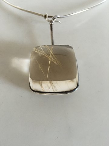 Georg Jensen Sterling Silver Torun Neckring No 174 with Pendant No 132. In Rutil Quartz.The neckrings diameter is 15 cm (5 29/32"). The pendant measures 3.5 x 3.5 cm (1 3/8")
