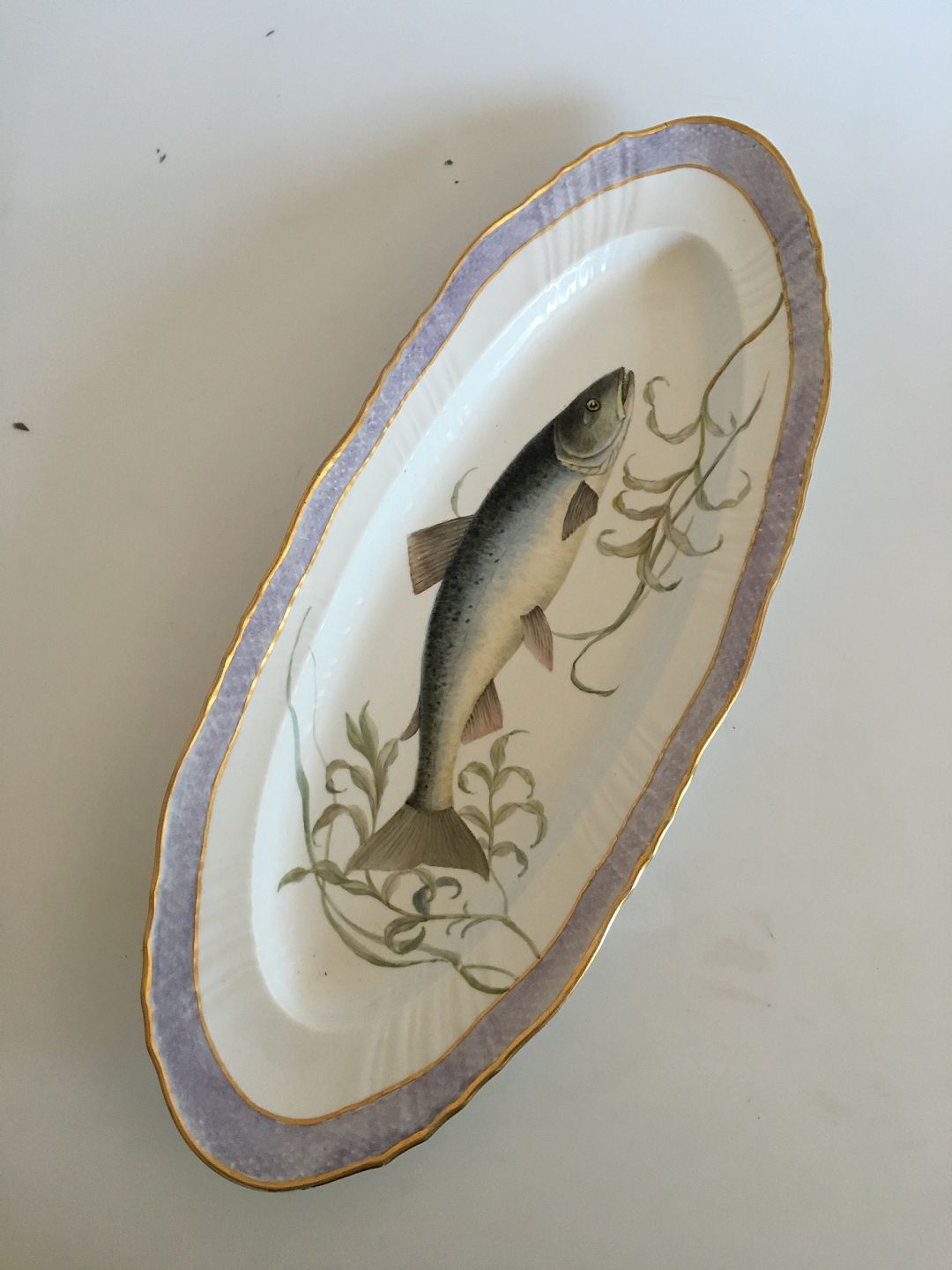 Royal Copenhagen Oval Fish Serving Dish from 1933 (Homemade) 61 cm (24 1/64"). The gold has some wear to it.
