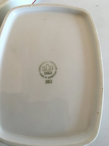 Bing & Grondahl Butter Jar No 582 from the Apothecary Collection designed by Bo Bonfils in the 1970s. 14.5 x 7 cm (5 45/64" x 2 3/4")